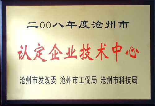 我公司被滄州市發改委、滄州市工促局、滄州市科技局聯合認定為2008年度企業技術中心。近日,獎牌下發到公司。這是繼我公司被評為“河北省高新技術企業”、“滄州市高新技術先導企業”之后,政府部門再次對我公司多年來一直致力于新技術研發和投入的肯定。這一稱號的取得,也會為企業帶來一定的政策支持。