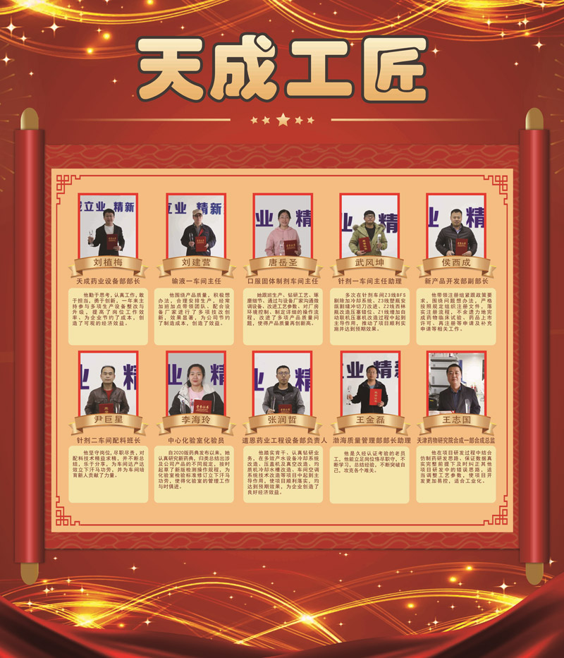 唐岳圣:口服固體制劑車間主任,她跟班生產、鉆研工藝、琢磨細節、通過與設備廠家溝通微調設備、改進工藝參數、對廠房環境控制、制定詳細的操作流程,改進了多項產品質量問題,使得產品質量再創新高。